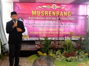KABUPATEN TANGERANG | Komet.News – Musyawarah Perencanaan Pembangunan Desa (Musrenbangdes) 2026 Desa Pondok Jaya telah sukses digelar dengan dihadiri tokoh penting desa dan jajaran pemerintahan. Kegiatan ini dihadiri oleh Sekcam Sepatan, para kasi, kepala sekolah, Badan Permusyawaratan Desa (BPD), Ketua Karang Taruna Desa Pondok Jaya, Sekdes Pondok Jaya, Ketua PKK beserta jajarannya, Babinsa, Bhabinkamtibmas, dan tokoh masyarakat setempat. Selasa, (16/9/2025).