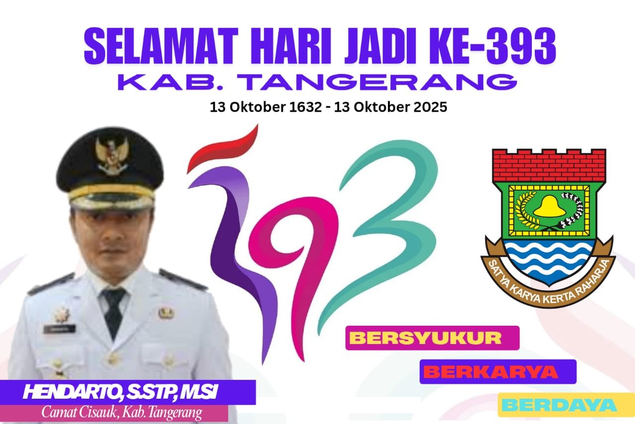 TANGERANG | Komet.News – Kabupaten Tangerang merayakan Hari Jadi ke-393 pada Senin, 13 Oktober 2025. Peringatan ini menjadi momentum penting untuk merefleksikan perjalanan sejarah panjang Kabupaten Tangerang sejak berdiri pada 13 Oktober 1632 hingga kini menjadi salah satu daerah penyangga ibu kota yang berkembang pesat.