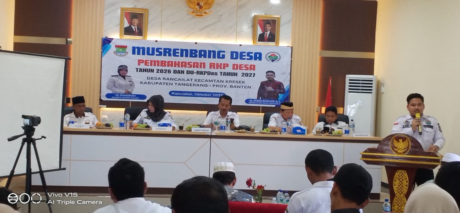TANGERANG | Komet.News -Pemerintah Desa Rancailat, Kecamatan Kresek, menggelar Musyawarah Perencanaan Pembangunan Desa (Musrenbangdes) dalam rangka pembahasan Rencana Kerja Pemerintah Desa (RKPDes) tahun 2026 serta Daftar Usulan (DU) RKPDes tahun 2027, Rabu (08/10/25). Kegiatan ini dihadiri langsung oleh Camat Kresek, Bapak Eka Fathussidki, bersama perangkat desa, BPD, Binamas.Ibu PKK.tokoh masyarakat, serta pendamping desa.