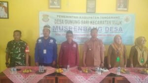 GUNUNG SARI | Komet.News – Pemerintah Desa Gunung Sari, Kecamatan Mauk, Kabupaten Tangerang menyelenggarakan Musyawarah Perencanaan Pembangunan Desa (MUSRENBANGDES) Tahun Anggaran 2026 sekaligus penjaringan Daftar Usulan (DU) RKPDes Tahun 2027, Selasa (30/9/2025), bertempat di aula kantor desa lantai 2.