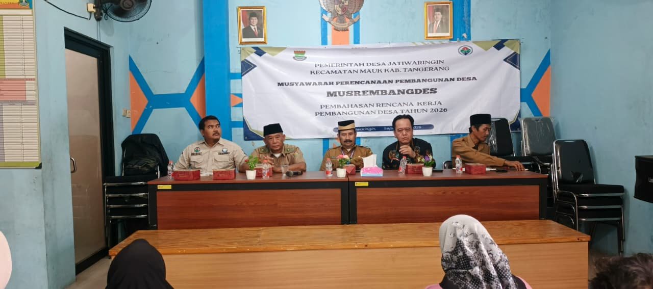 Sementara itu, Sekcam Mauk Mahfud mengapresiasi kekompakan Pemerintah Desa Jatiwaringin dalam menyiapkan agenda musyawarah yang transparan dan partisipatif.