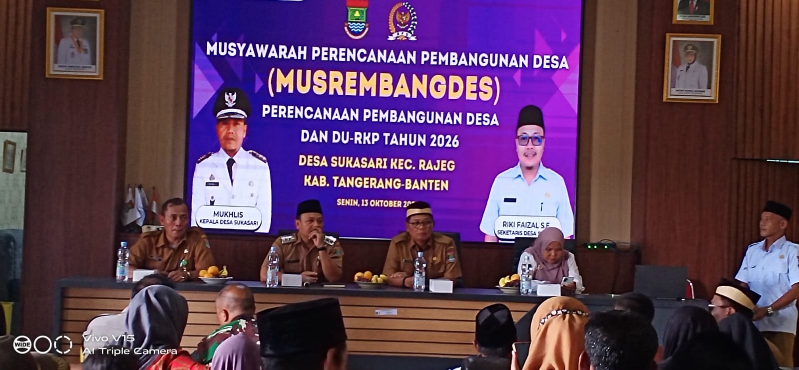 TANGERANG |Komet.News — Senin, 13 Oktober 2025 — Pemerintah Desa Sukasari, Kecamatan Rajeg, Kabupaten Tangerang sukses menyelenggarakan Musyawarah Perencanaan Pembangunan Desa (MUSRENBANGDES) dalam rangka penyusunan Rencana Kerja Pemerintah Desa (RKPDes) Tahun 2026 serta Daftar Usulan (DU) RKPDes Tahun 2027.