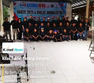 PANDEGLANG | Komet.News – Media siber Nasionalnews.id sukses menggelar perayaan Hari Ulang Tahun ke-7 yang berlangsung meriah di Pantai Ocean Blue, Tanjung Lesung, Pandeglang, Banten, pada 11–12 Oktober 2025. Kegiatan ini dirangkai dengan Rapat Kerja (Raker) 2025 dan Diklat Jurnalistik, mengusung tema: “Tingkatkan Pengetahuan Wartawan di Era Digital.” di mulai jam 13.00 WIB, Senin (13/10/2025).