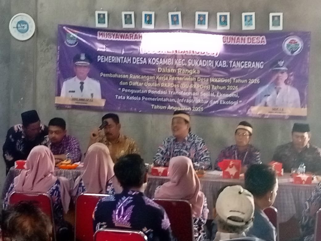 TANGERANG | Komet.News – Pemerintah Desa Kosambi, Kecamatan Sukadiri, Kabupaten Tangerang, menggelar Musyawarah Perencanaan Pembangunan Desa (Musrenbangdes) Tahun Anggaran 2026. Kegiatan ini dihadiri Sekretaris Kecamatan (Sekcam), Kasi Pembangunan Kecamatan, perangkat desa, serta berbagai unsur masyarakat. Kamis, (25/9/2025).