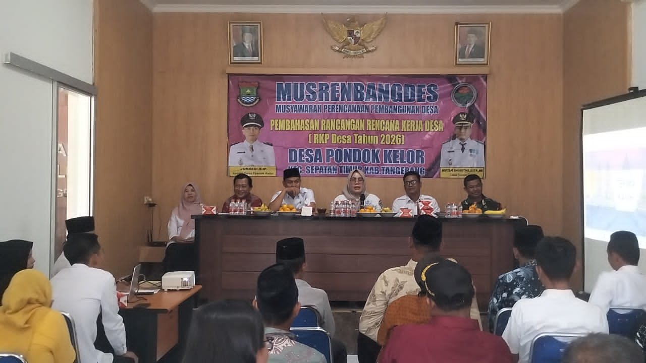 TANGERANG, Komet.News – Pemerintah Desa Pondok Kelor, Kecamatan Sepatan Timur, Kabupaten Tangerang, menggelar Musyawarah Perencanaan Pembangunan Desa (MUSRENBANGDES) Tahun Anggaran 2026 pada Rabu (24/9/2025). Acara berlangsung di aula kantor desa dengan dihadiri Camat Sepatan Timur Miftah Shuritho, S.STP., Kepala Desa Pondok Kelor Junaedi, Kasie Pelayanan Kecamatan Sepatan Timur Naseli, BPD, perangkat desa, tokoh masyarakat, hingga perwakilan kelembagaan desa.