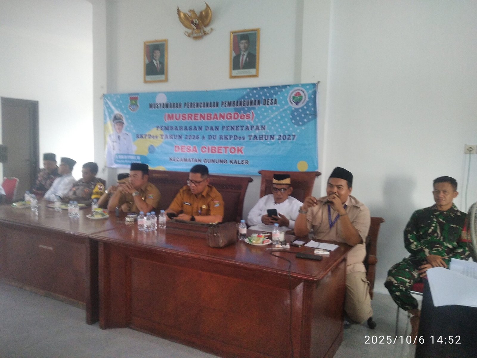 TANGERANG | Komet.News – Pemerintah Desa (PEMDES) Cibetok Kecamatan Gunung Kaler, Kabupaten Tangerang, menggelar Musyawarah Perencanaan Pembangunan Desa (MUSRENBANGDES) tahun anggaran 2026, yang berlangsung di aula kantor desa setempat, Senin (6/10/2025).