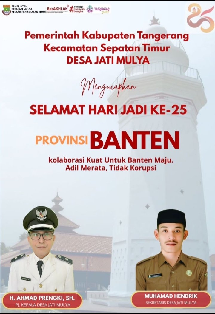 Ucapan ini disampaikan langsung oleh Pj. Kepala Desa Jati Mulya, H. Ahmad Prengki, SH bersama Sekretaris Desa, Muhamad Hendrik, sebagai bentuk penghormatan dan dukungan penuh terhadap kemajuan Banten.