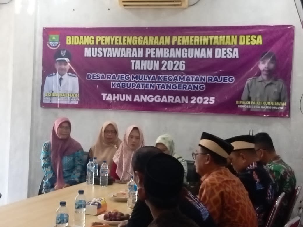 TANGERANG| Komet.News – Pemerintah Desa Rajeg Mulya menggelar Musyawarah Perencanaan Pembangunan Desa (MUSRENBANGDES) Tahun Anggaran 2026 pada Kamis, 9 Oktober 2025. Acara ini dihadiri oleh Sekretaris Camat Rajeg, Deni, perangkat desa, BPD, kader PKK, tokoh masyarakat, serta berbagai elemen warga.