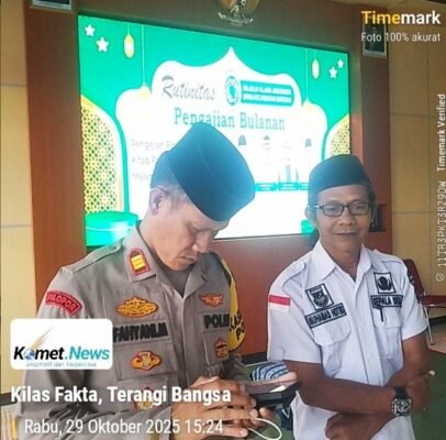 SEPATAN | Komet.News –  Suasana khidmat dan penuh makna menyelimuti Aula Kantor Desa Pisangan Jaya pada Rabu (29/10/2025), saat Majelis Ulama Indonesia (MUI) Desa Pisangan Jaya menggelar pengajian rutin bulanan “Fathul Muin”. Kegiatan ini menjadi momen perdana bagi Desa Pisangan Jaya menjadi tuan rumah pelaksanaan pengajian ulama dan umaro Kecamatan Sepatan.
