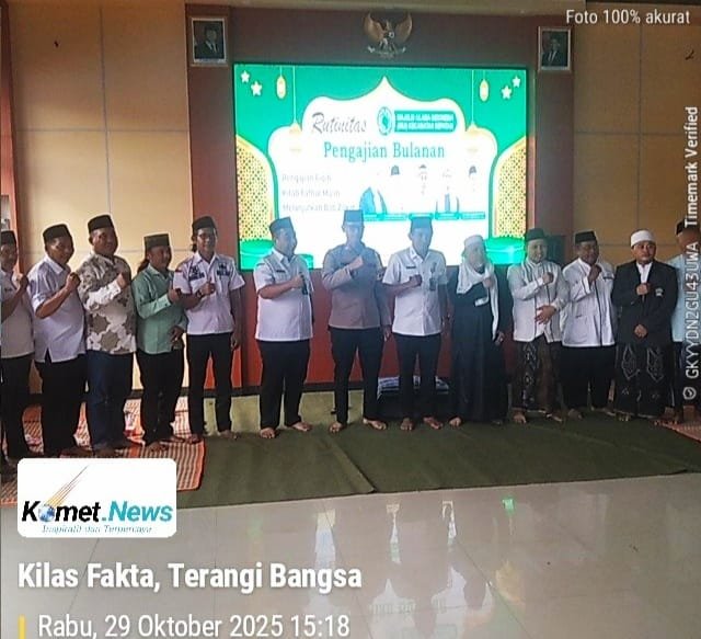 SEPATAN | Komet.News –  Suasana khidmat dan penuh makna menyelimuti Aula Kantor Desa Pisangan Jaya pada Rabu (29/10/2025), saat Majelis Ulama Indonesia (MUI) Desa Pisangan Jaya menggelar pengajian rutin bulanan “Fathul Muin”. Kegiatan ini menjadi momen perdana bagi Desa Pisangan Jaya menjadi tuan rumah pelaksanaan pengajian ulama dan umaro Kecamatan Sepatan.