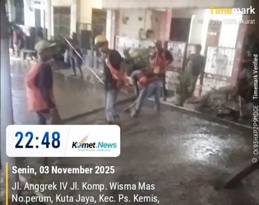 PASAR KEMIS |Komet.News – Pekerjaan proyek betonisasi di Perumahan Wisma Mas 2 RT 07/15, Kelurahan Kuta Jaya, Kecamatan Pasar Kemis, Kabupaten Tangerang, menuai sorotan dari masyarakat. Proyek yang bersumber dari APBD-P Kabupaten Tangerang Tahun 2025 dan dikerjakan oleh CV. Risfan Contractor dengan nilai anggaran Rp 149.077.000, diduga mengalami lemahnya pengawasan dari dinas terkait.